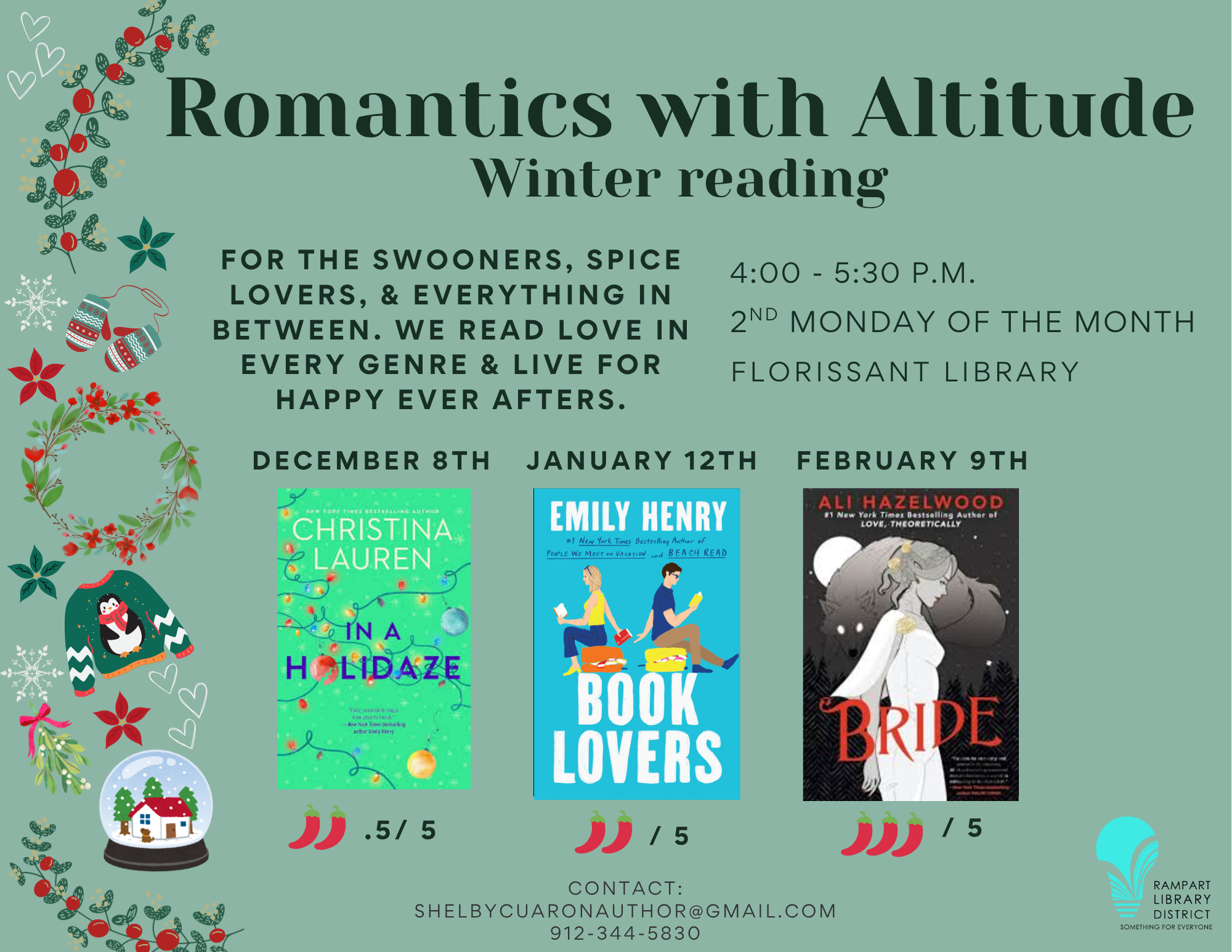 For the swooners, spice lovers, and everything in between! We read love in every genre & live for happy ever afters. Join us for our meeting!